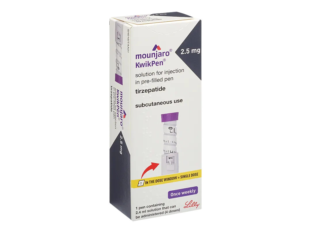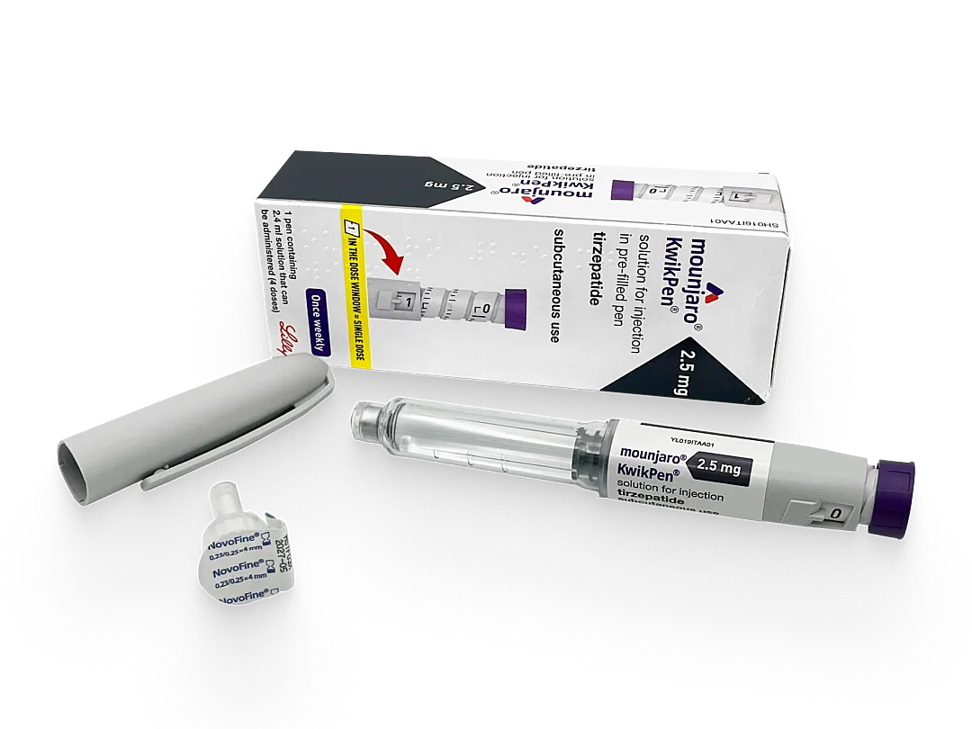 Mounjaro is a weekly weight loss injection that contains the active ingredient tirzepatide. Tirzepatide works by activating two receptors (GLP-1 and GIP) to increase the level of hormones in the body, helping you to feel fuller for longer after a meal.