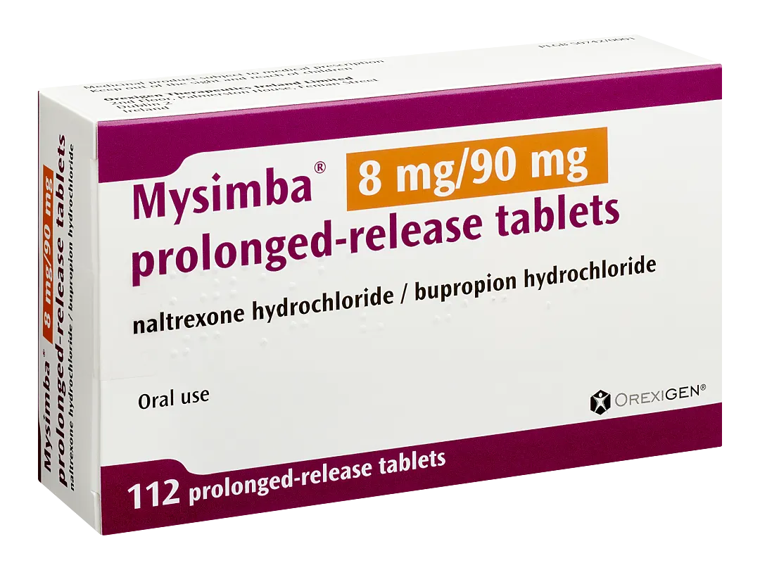 Mysimba is a prescription weight loss pill that, when taken alongside a healthy diet and regular exercise, can help manage your weight if you are overweight or obese. It contains 2 active ingredients, naltrexone and bupropion, which suppress your appetite and act on the reward centres in the brain. This can reduce cravings and food noise, supporting you to follow a reduced-calorie diet and lose weight.